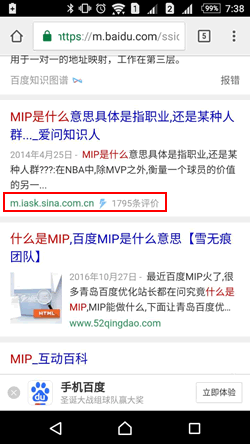 百度因此也不遗余力地推进MIP计划,这包括百度站长平台团队投入的伟大资源。他们效仿谷歌作出了很多努力。我们看到百度站长平台中已经拓荒了MIP提交的专门渠道;GitHub上建立起了一个开源项目;一个项目平台已经发布用于开发者学习,一两天内就可以掌握该技术;一个自力的IDE开发环境已发布,同时发布的有一个在线代码验证器;百度还为WordPress如许常用的内容管理体系制作了专门的模板;最紧张的是在百度移动搜索页面效果上你可以看到MIP页面旁会有一个小闪电的图标。